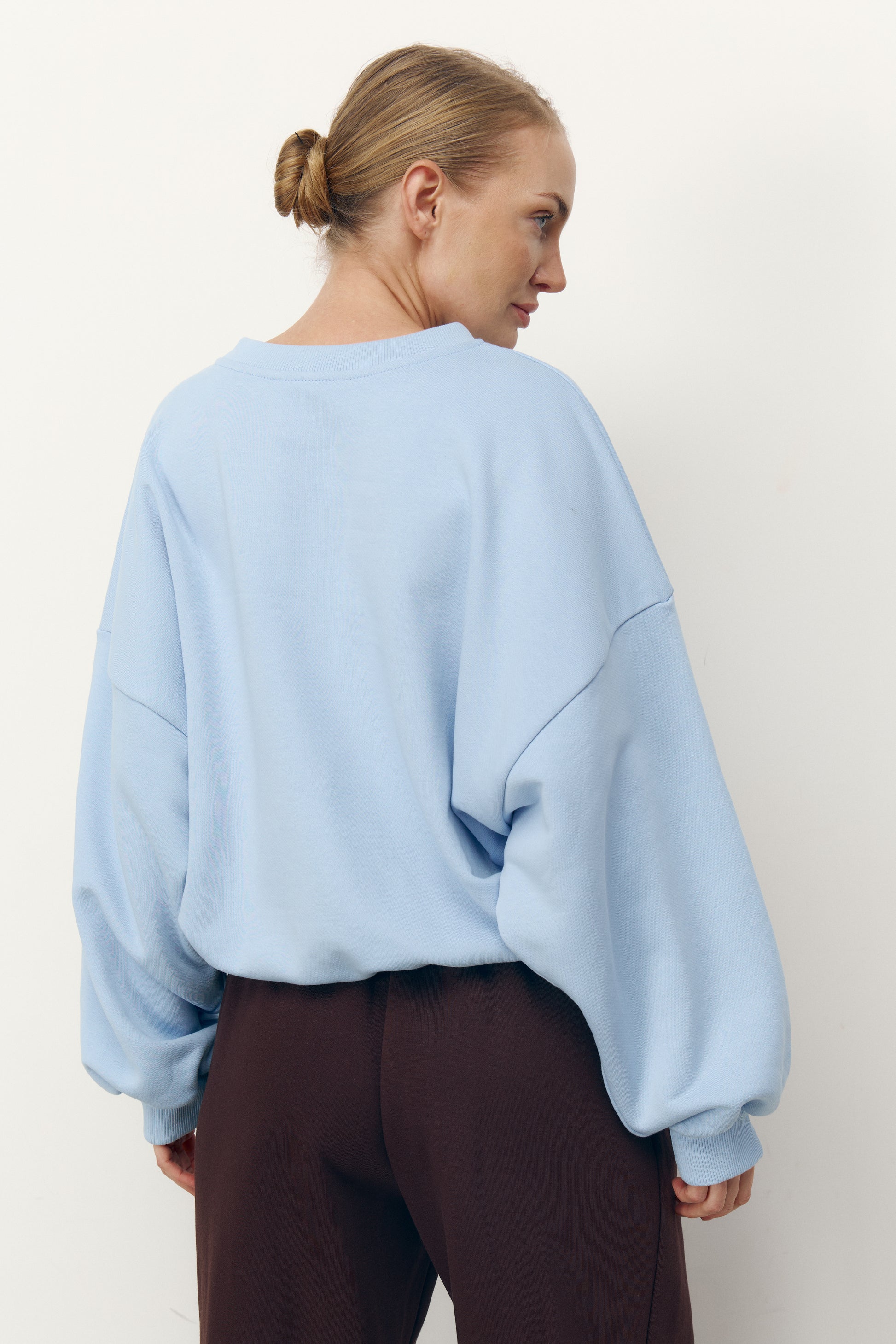 Універсальний крій не додає зайвого об’єму — завдяки продуманим лініям, що тримають форму й залишають силует акуратним. Правильний округлий виріз горловини красиво підкреслює шию, а спущене плече дарує свободу рухів і комфорт. Манжети на рукавах і знизу формують зібраний, чистий силует.